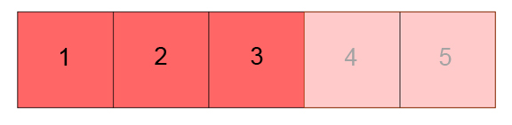 The above illustration also fits the description “three of the quantity one fifth”. Once again, the entire bar represents the quantity one, and it has been divided into five equal squares, so each square represents the quantity “one fifth”. Using three of the squares therefore represents three “fifths”.